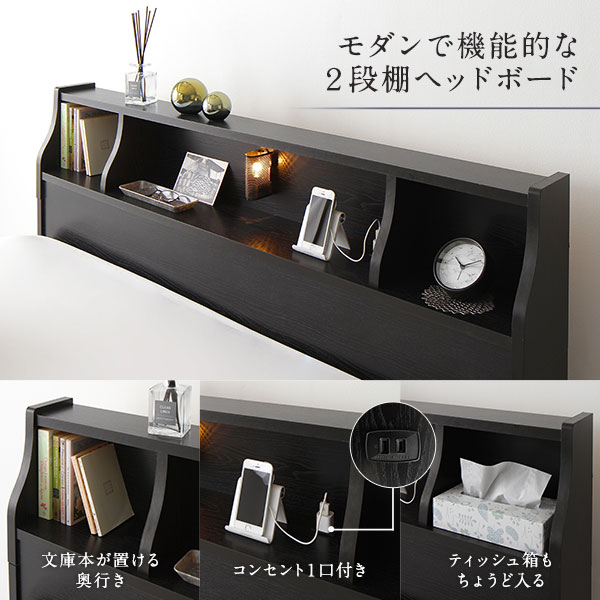 【モダンで機能的な2段棚ヘッドボード】