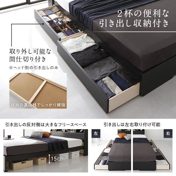 ベッド下には2杯の引き出し収納付き