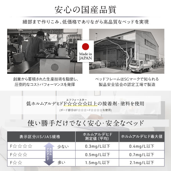 ・ベッドフレームはSGマークで知られる製品安全協会の認定工場で製造