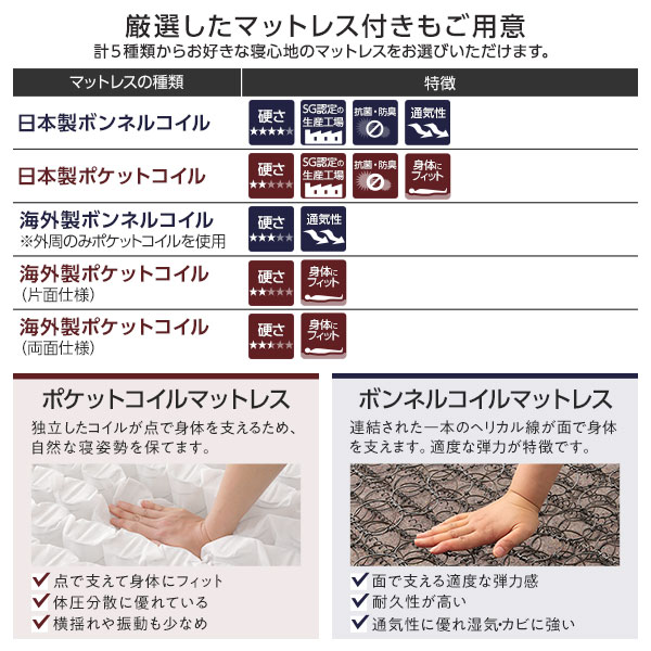 【厳選したマットレス付きもご用意】