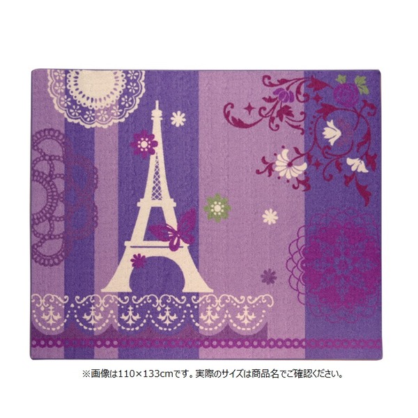 デスクカーペット 女の子 エッフェル柄 『ジェンヌ ツー』 パープル 約133×170cm 【北海道・沖縄・離島配送不可】