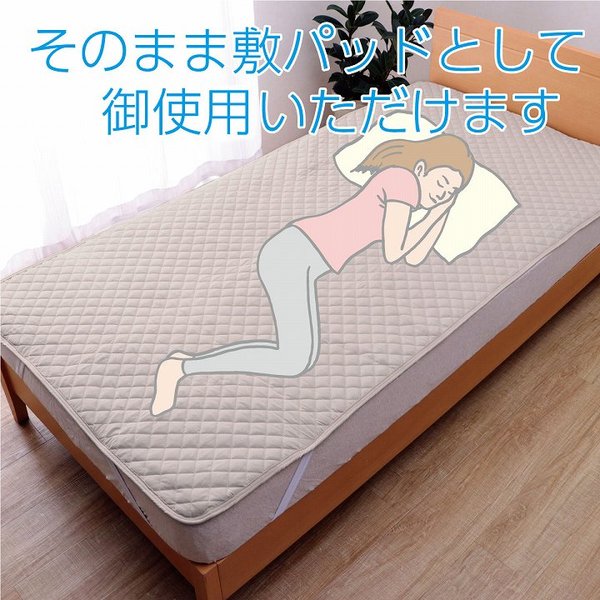 ベッドやお布団を汚れや劣化から守ってくれる便利なベッドパッドです。ご使用いただく事でクッション性も上がり寝心地を向上させます。裏地にポリウレタンコーティング加工をしているので、水分を通しにくい防水効果があります。Aller Proofシート入りで汗臭・トイレ臭・ペット臭などのイヤな臭いを消臭してくれます。アレル物質を吸着し、黄色ブドウ球菌などの雑菌の繁殖を抑制する効果もあります。ご家庭の洗濯機で丸洗い出来ます。洗濯の際は洗濯ネットを必ずご使用ください。四隅ゴムバンド付きでずれにくいです。マットレス30cm厚まで対応可能です。