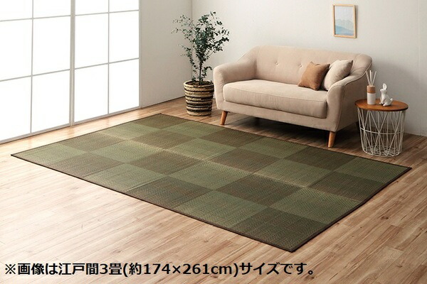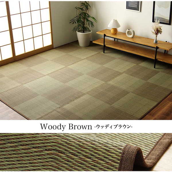 い草ラグ 花ござ カーペット 格子柄 ナチュラル シンプル 和室 抗菌防臭 消臭 お手入れ簡単 夏快適さらさら 江戸間8畳(約348×352cm) ウッディブラウン 【北海道・沖縄・離島配送不可】