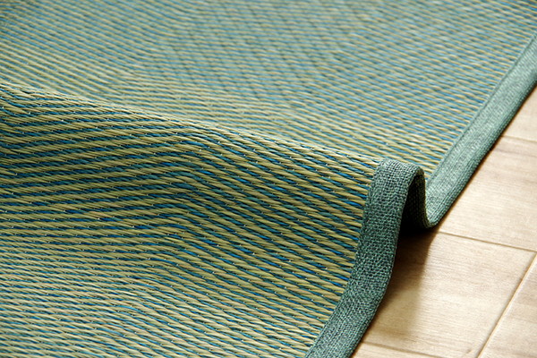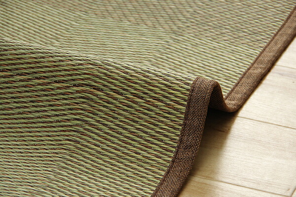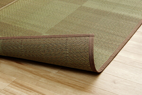 い草カーペットは和室の畳をカバーし、汚れや傷を防止してくれます。通常のカーペットと違い毛足が無いのでゴミや髪の毛などがからみにくく、掃除機やコロコロ(粘着シート)での掃除がラクにできます。い草には優れた消臭機能があり、汗臭やペット臭などの原因となる物質を消臭してくれます。い草には喘息の原因の一つとも言われる二酸化窒素や、シックハウス症候群の原因の一つのホルムアルデヒドを吸着してくれます。天然物質としては抗菌力の高い青森ヒバから抽出したヒノキチオールをい草生地に使用しており、抗菌防臭効果があります。い草の癒される香りとサラッとした肌触りはそのままに、和室や洋室にも合わせられるインテリア性の高いナチュラルシンプルなデザインで仕上げています。