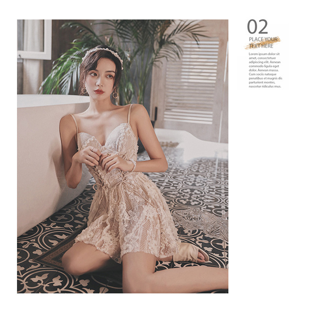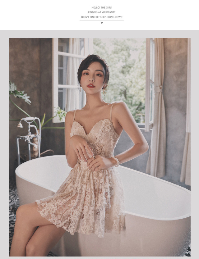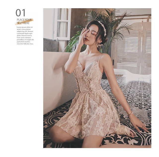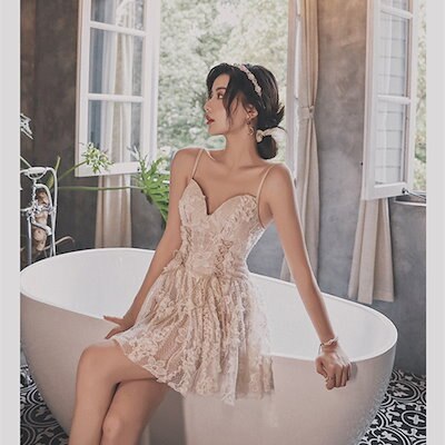レースオールインワンカップ付きインナービキニ水着着痩せ