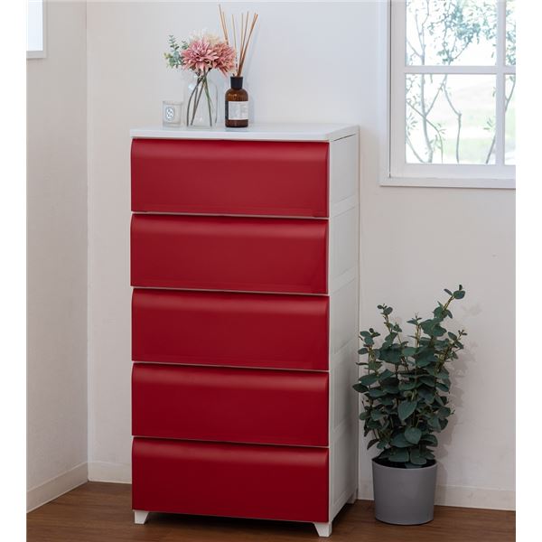 ホコリが入りにくい nodus 5段ワイドチェスト レッド 日本製 組立品 【北海道・沖縄・離島配送不可】