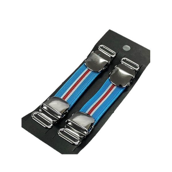アームバンド・シャツガーター シルバークリップタイプ JAPAN MADE トラッド サックス×ホワイト×レッド 【北海道・沖縄・離島配送不可】