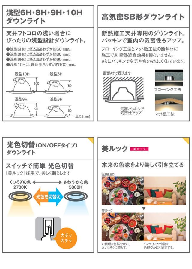 ◆天井埋込型、埋込穴φ100、美ルック・光色切替タイプ・浅型8H・高気密SB形・ビーム角30度・集光タイプ
