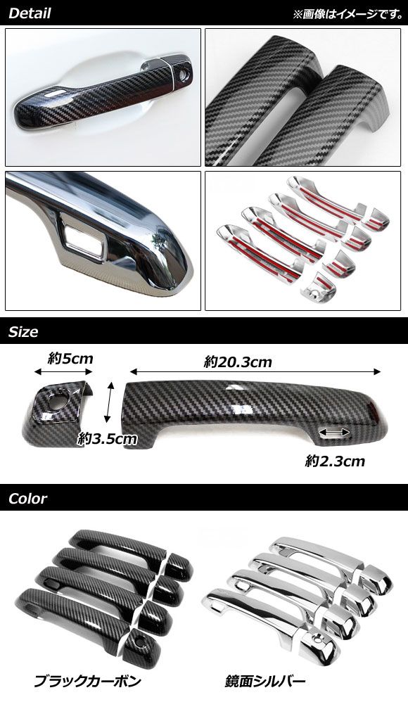 ドアハンドルカバー トヨタ ランドクルーザープラド 150系 2009年09月〜 ブラックカーボン ABS樹脂製 キーレス穴×2 入数:1セット(8個) AP-XT462-BKC