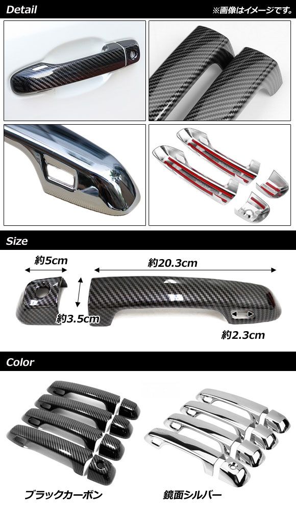 ドアハンドルカバー トヨタ ランドクルーザープラド 150系 2009年09月〜 ブラックカーボン ABS樹脂製 キーレス穴×4 入数:1セット(8個) AP-XT1381-BKC