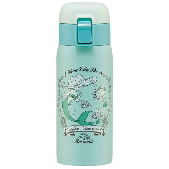 水筒 350ml ステンレス ワンタッチ 直飲み リトル・マーメイド アリエル ( リトルマーメイド 保温 保冷 ワンプッシュ ステンレスボトル キャップロック設計 直のみ 広口 マグ 水筒 子供 水筒 350ml)