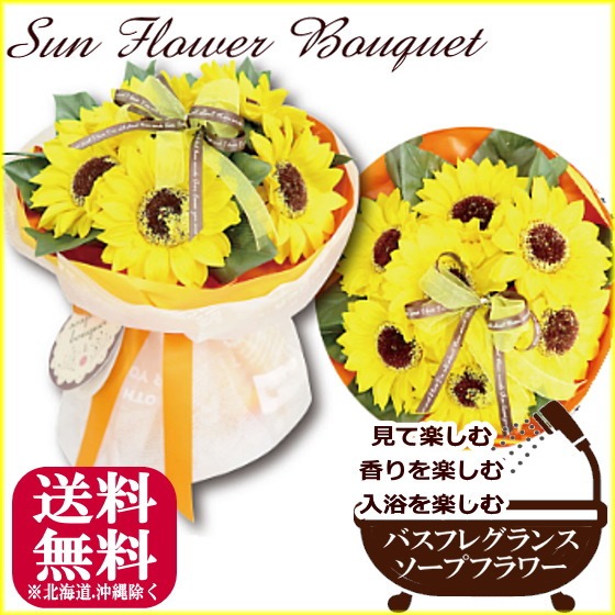 バスフレグランス≪ひまわりブーケ≫ 誕生日 プレゼント 花束 ソープフラワー 入浴剤 ギフト プレゼント 御祝 お祝い ブーケ 記念日 結婚祝い 向日葵 お中元 夏 ビタミンカラー 退職 送別会