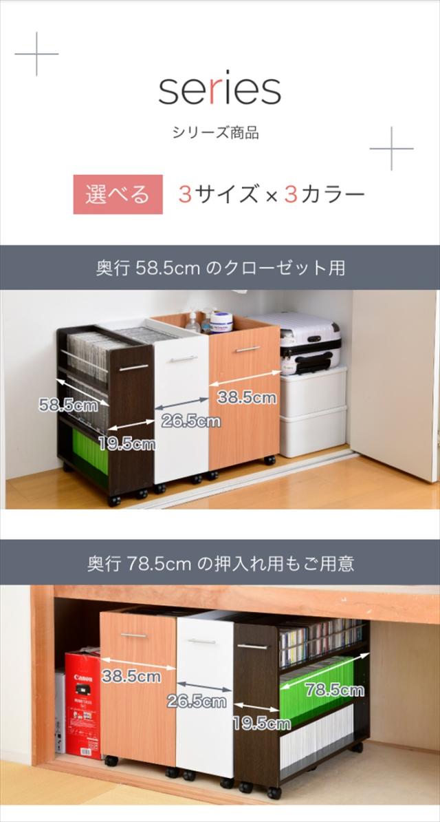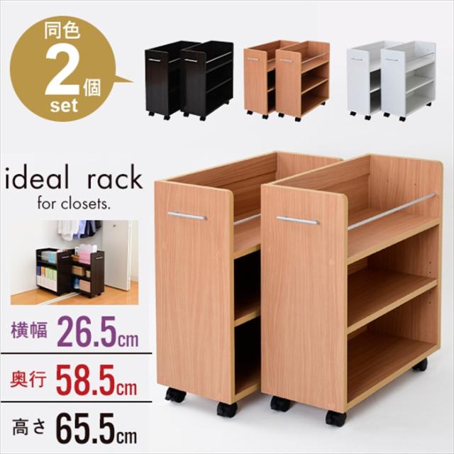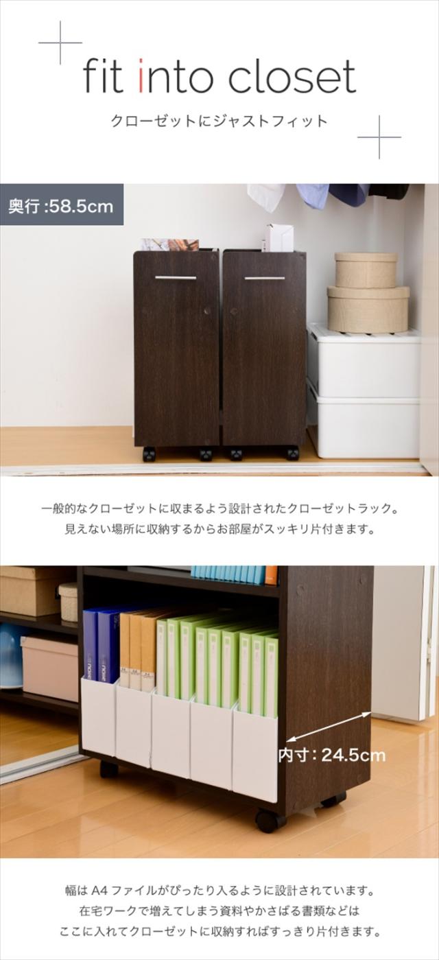 クローゼット ラック 収納 2個セット A4ファイル 幅26.5 奥行58 .5 キャスター付き ワイド ワゴン 大容量 日用品 生活用品 隙間 収納 棚 本棚 コミック スライド