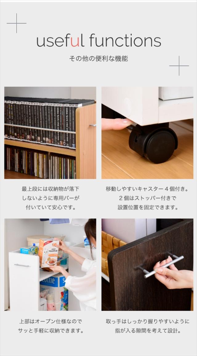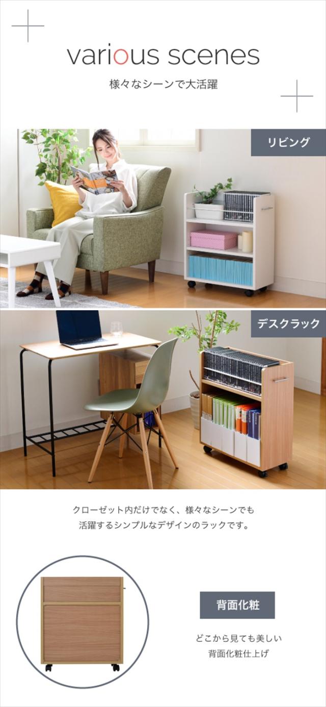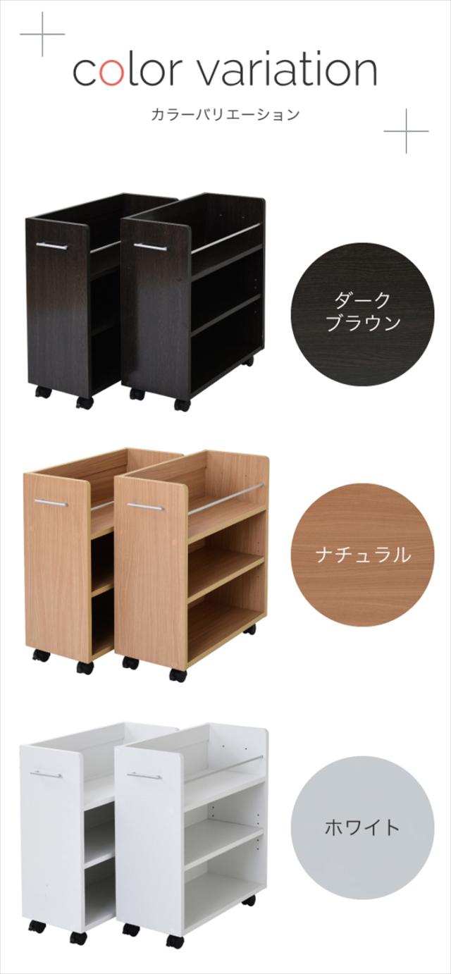 収納ラック 一人暮らし 省スペース 薄型 キャスター キャスター付 本 漫画 漫画本 マンガ CD DVD バッグ 箱 ランドセル 帽子 3段 木製 木 ホワイト 白 ナチュラル ダークブラウン シンプル