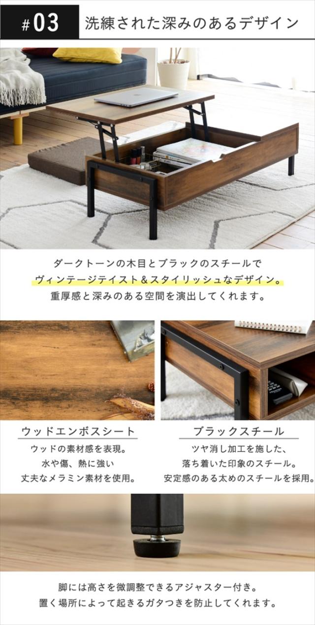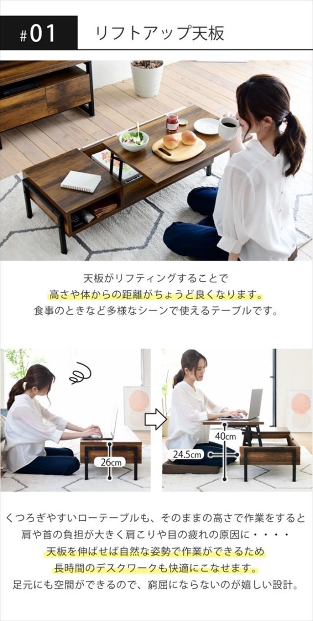 一人暮らし 収納 お洒落 油圧式 センターテーブル ローテーブル ビンテージ アンティーク 黒 作業台 昇降 昇降式 鉄脚 木製 木製テーブル 油圧 リビング ブラウン パソコン ヴィンテージ ウッド エクステンション 木 ラック 木目調 木目 在宅 テレワーク ダークブラウン pc 40cm 脚 収納付き ブラック
