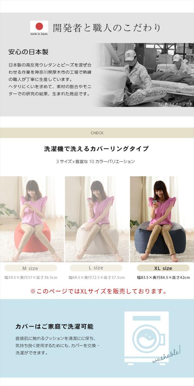クッション ビーズ XL 特大 日本製 カバー洗濯可能 ビーズクッション もっちり 人をダメにする 姿勢 癒し リラックス 極小ビーズ