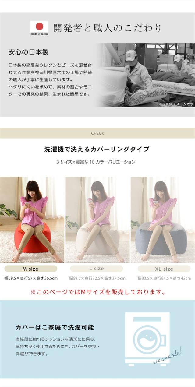 クッション ビーズ M 日本製 カバー洗濯可能 ビーズクッション もっちり 人をダメにする 姿勢 リラックス 極小ビーズ ソファ