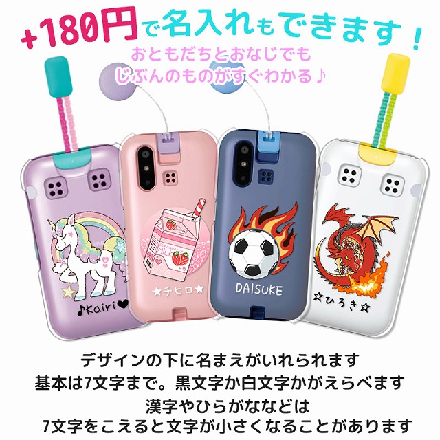 - キッズケータイが傷だらけになる前に装着しました。ソフトケースで、つけた方がケータイを持ちやすいとのこと。かわいい絵柄と名前を入れることができるので、さらに良かったです!