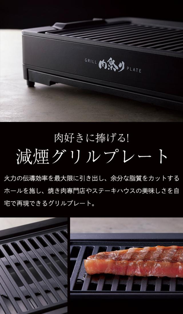 | 焼肉屋さんのグリルホールを再現、余分な脂を落とし「減煙」「減脂」を実現した、 美味しさを極める、肉好きに捧げる、肉好きのためのグリルプレートです。 プレートのグリルホールから余分な脂が油受けトレイの水に落ちて、脂が燃焼せず煙やにおいが軽減する構造。 油受けトレイに落ちた余分な脂は水と一緒に洗い流せます。 ヒーターが直に搭載されたプレートは、火力の伝導効率を最大限に引き出し、お肉を素早く焼き上げます。 強火から弱火まで温度(火力)調節が可能。 A4サイズほどのプレートなので、1〜2人で焼肉を楽しむのにぴったりなサイズ。 |