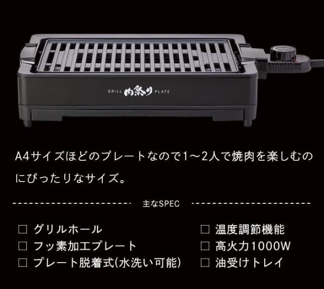 ホットプレート 一人用 焼肉 減煙 洗える 煙が出にくい 1000W 火力 グリルプレート 焼肉グリル 煙 少ない 焼肉プレート 温度調節 電気焼肉器 焼き肉プレート 網焼き プレート ヘルシー パワフル ふっ素樹脂加工 電気プレート