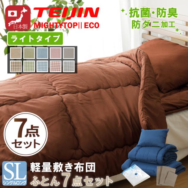 布団 布団7点セット 日本製 カバー付き シングルロング 軽い 防ダニ 抗菌 防臭 吸湿 国産 安心 敷き布団 掛け布団 枕 圧縮収納袋 布団一式 テイジン TEIJIN 新生活 来客用 帰省 マイティトップ