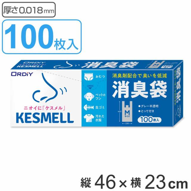 消臭袋 取っ手付き 46×23cm 厚さ0.018mm 100枚入り 半透明グレー ( レジ袋 ポリ袋 100枚 消臭 グレー 半透明 ゴミ袋 袋 小さい カサカサ ボックスタイプ 生ゴミ おむつ 介護 臭い ニオイ ペット 中身が見えにくい 丈夫 )