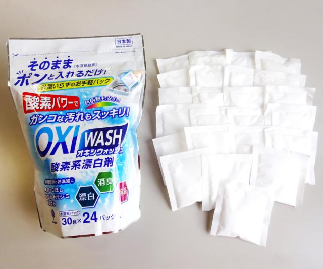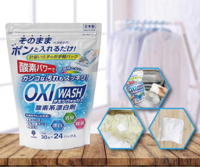 オキシウォッシュ 酸素系漂白剤 30g 24個入 ( OXIWASH オキシ 洗濯洗剤 個包装 粉末 弱アルカリ性 色柄OK 日本製 衣類 洗濯 洗剤 消臭 漂白 除菌 食べこぼし 血液 汗ジミ 黄ばみ )