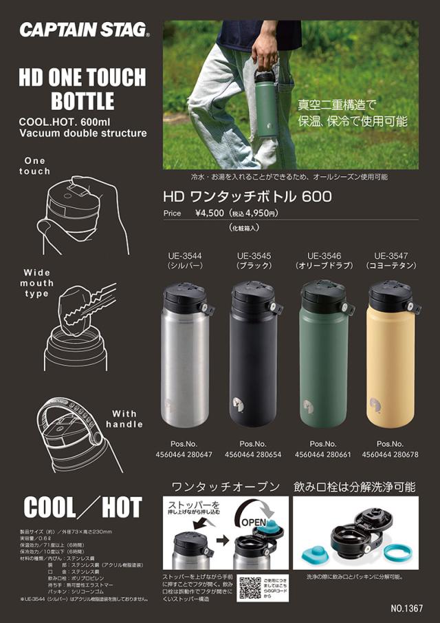 HDワンタッチボトル600(オリーブドラブ) アウトドア・キャンプ用品 キャプテンスタッグ CAPTAIN STAG 屋外 レジャーソロキャンプ バーベキュー 正規品取扱店 パール金属
