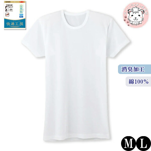 グンゼ 快適工房 半袖 丸首 消臭 綿100% M/L | 涼風綿 クルーネック 春夏 メンズ 綿 下着 肌着 インナー KQ6414 GUNZE