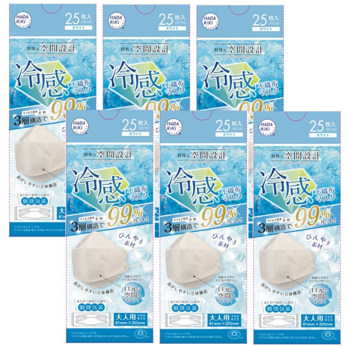 不織布マスク HADARIKI 空間設計マスク 冷感不織布マスク ホワイト 25枚入り ×6【6個セット】送料無料 個包装 カラーマスク 夏用 冷感 立体 ひんやり