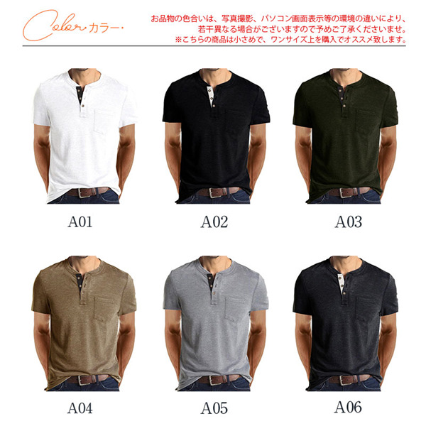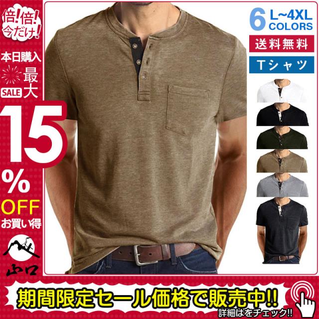 Tシャツ メンズ ヘンリーネック 半袖 無地 春 夏 半袖Tシャツ カットソー おしゃれ ポケット付き 丈夫 カジュアル アメカジ