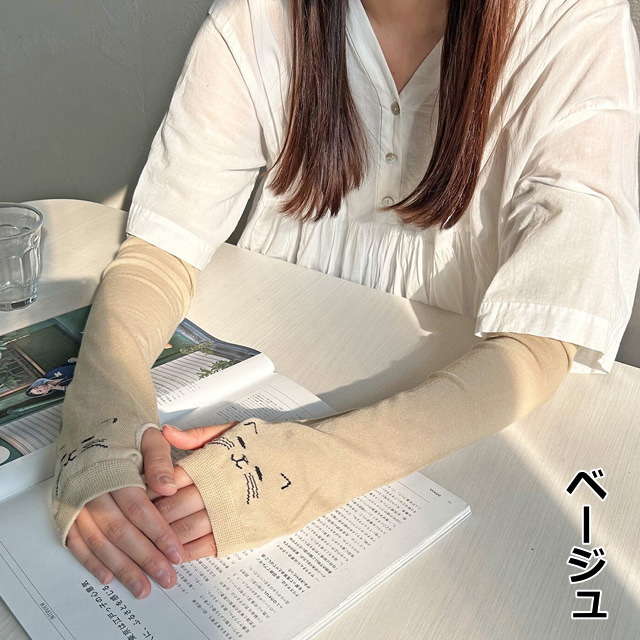ワンポイントの猫顔が可愛い UV ロング アームカバー です。柄がリニューアルしました♪