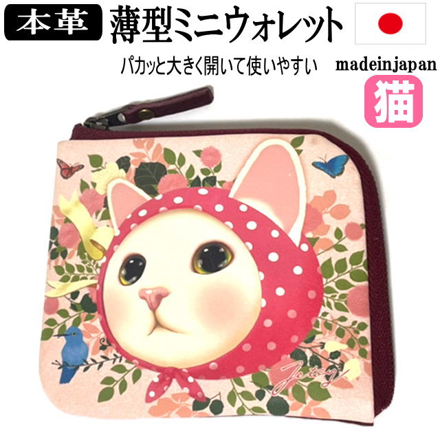 財布 猫 レディース 本革 猫柄 ブランド 本革 キャット 2つ折り チューチュー ネコ財布 ウォレット 白ねこ 猫雑貨 猫グッズ 誕生日