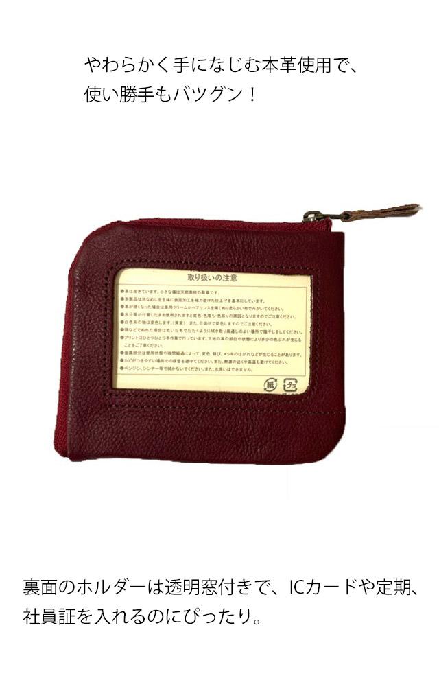 裏面のホルダーは透明窓付きで、ICカードや定期、社員証を入れるのにぴったり。