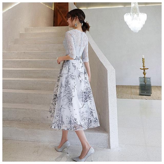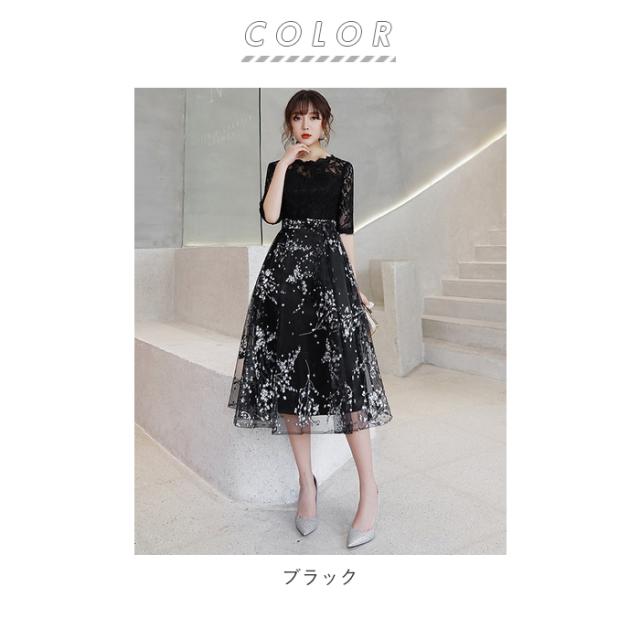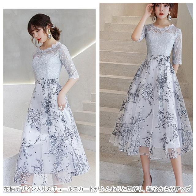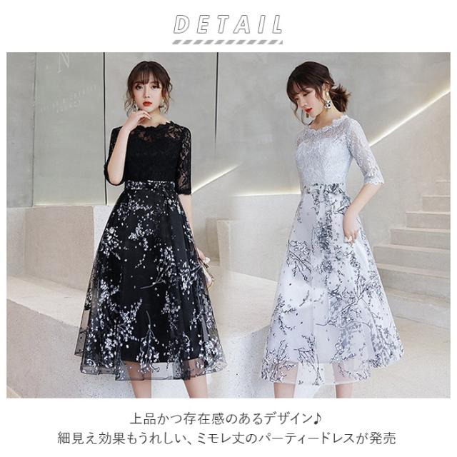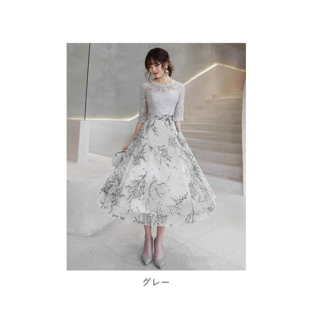 パーティードレス ロング 通販 ミモレ丈 花柄 刺繍 ワンピース ドレス バックファスナー パーティードレス ウェディングドレス 演奏会 ウエディング パーティードレス 結婚式 披露宴