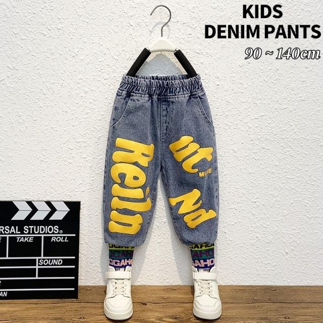 デニムパンツ ジーンズ ジーパン 長ズボン ロングパンツ 子供服 キッズ ベビー 男の子 女の子 ボトムス ウエストゴム ロゴ