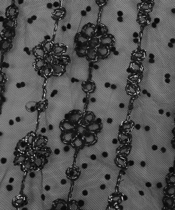 程良いボリュームと袖のラメ感×ドット柄でリッチに演出し、ドレッシー感を引き立てます。