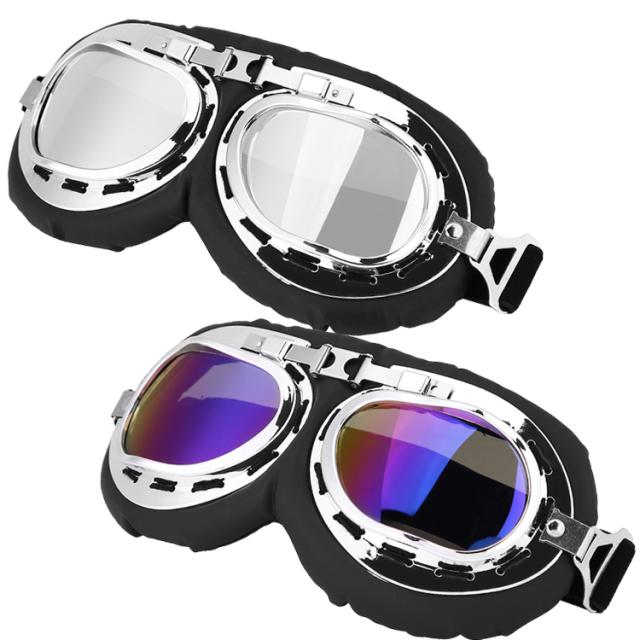 ヴィンテージタイプゴーグル ヘルメット用 フリーサイズ 伸縮バンド式 バイク 車 防風メガネ BIKFJ01