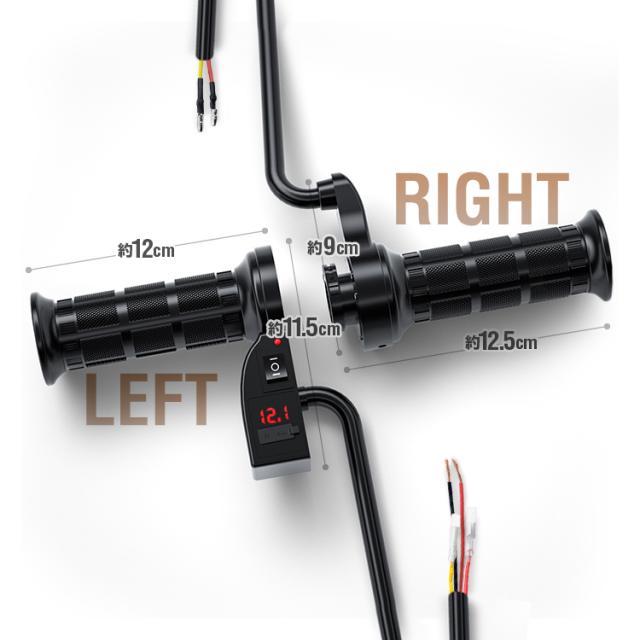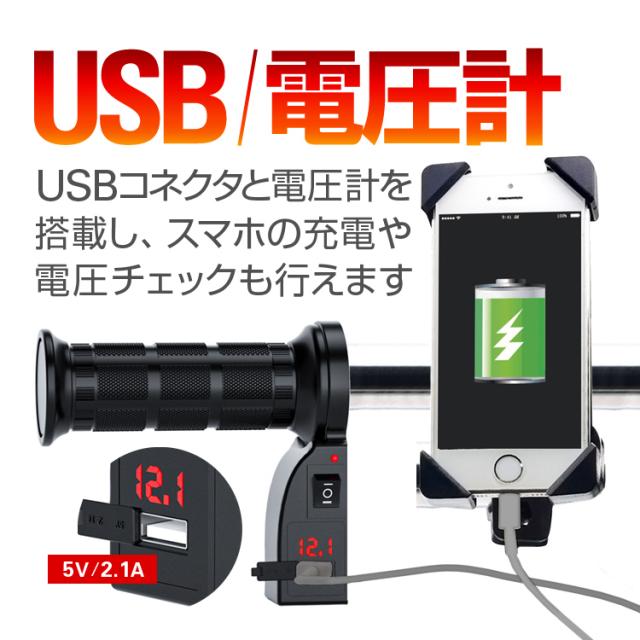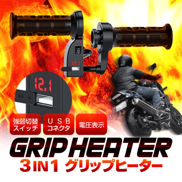 バイク用グリップヒーター 左右セット 文字カラーレッド限定 電圧表 USBポート 3IN1 防寒ホットグリップ 汎用品 GHPRO3IN1