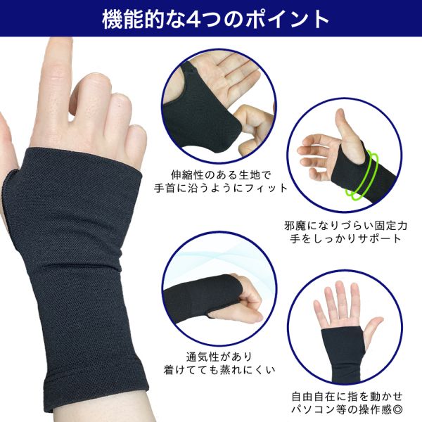 指の細かな作業にも対応できる手首サポーターです。
