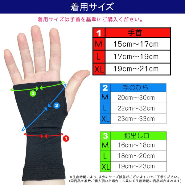 ・Mサイズ:手首約15-17cm 手のひら約20-30cm 指出し口約16-18cm