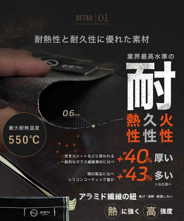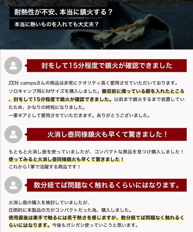 ZEN Camps アッシュキャリー Ash Carry Lサイズ(幅38 X 高さ34cm) 耐熱性 難燃性 コンパクト