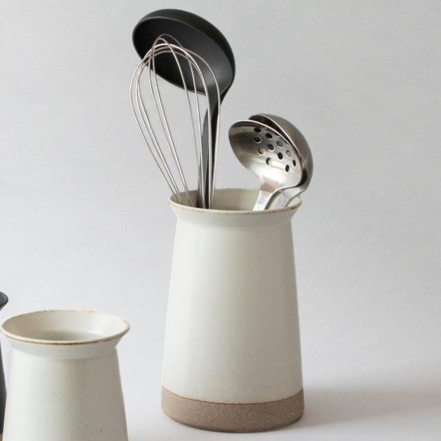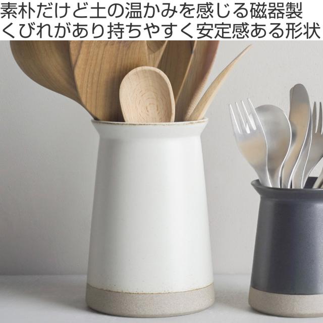 素朴な土の質感と味わいのある釉薬を組み合わせたセラミックラボ。キッチンツールやカトラリーをまとめてお洒落に収納できます。