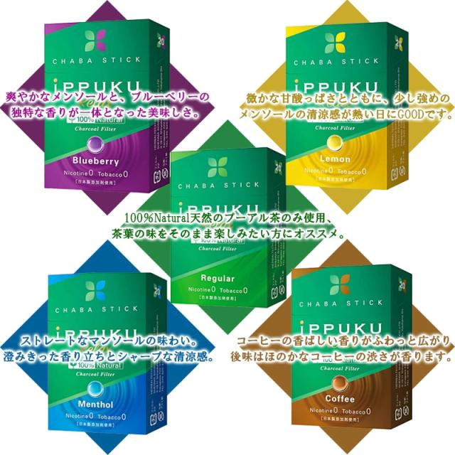 茶葉スティック 禁煙 iPPUKU ニコチンゼロ たばこ代用 3箱セット 選べる 5フレーバー レギュラー メンソール ブルーベリー レモン コーヒー