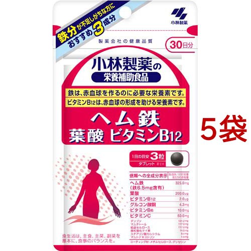 ヘム鉄 葉酸 ビタミンB12 約30日分(90粒*5袋セット)[ヘム鉄]