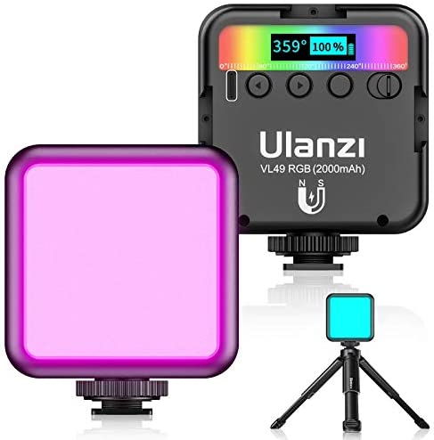 最新 Ulanzi VL49 RGB撮影ライト+三脚付き LEDビデオライト 卓上スタンド 359色RGBモード 明るさ調整が可能 9000k明るい白色光 2000mAh USB充電式 iphone/Gopro/Osmo Pocket/Samsung/Ni
