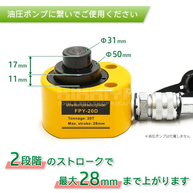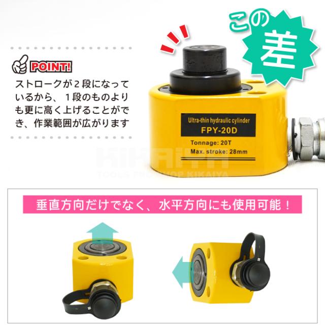 2段式 フラットシリンダー 20トン フラットジャッキ コンパクト 油圧シリンダー KIKAIYA