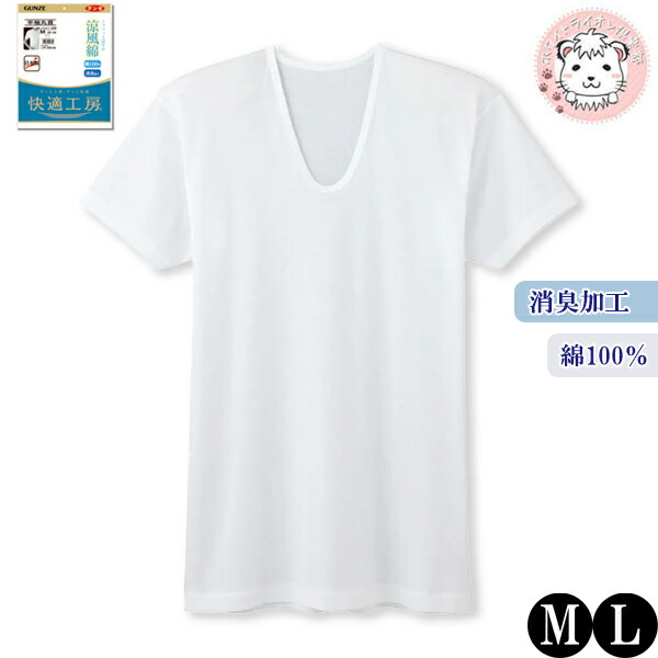 グンゼ 快適工房 半袖 U首 消臭 綿100% M/L | 涼風綿 春夏 メンズ 綿 下着 肌着 インナー KQ6416 GUNZE