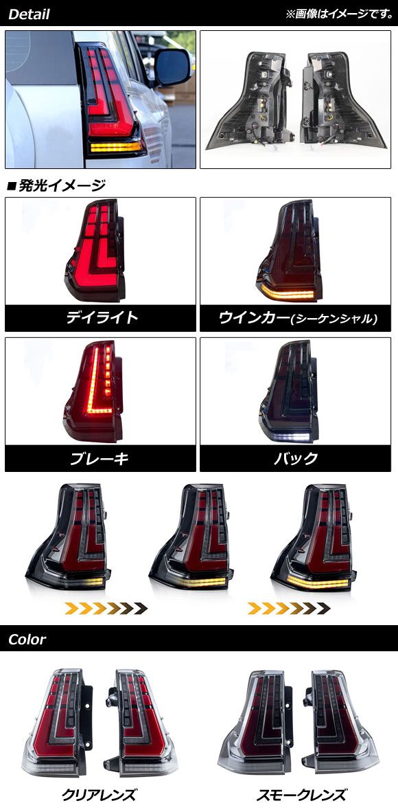 LEDテールランプ トヨタ ランドクルーザープラド 150系 後期 2017年09月〜2024年04月 クリアレンズ シーケンシャル連動 入数:1セット(左右) AP-RF126-CL