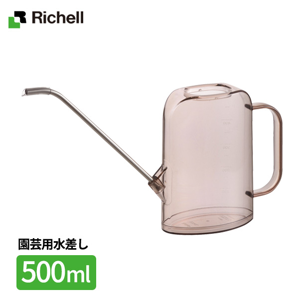 リッチェル 水差し グレース レクタングルピッチャー 500ml ブラウン 1-70324 | じょうろ ピッチャー ジョウロ 観葉植物 ベランダ菜園 ガーデニング 水やり 薄型